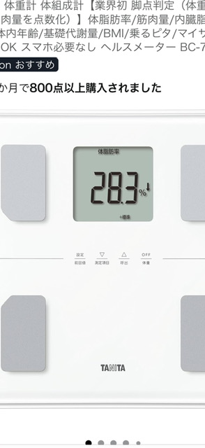 最近、体重も1〜2kg増で表示するから、思い切って新品を買った。